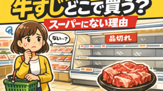 「牛すじを買いたいのに、どこのスーパーにも売っていない…」そんな経験をしたことはありませんか。 煮込み料理やおでん、カレーなどに使うと深いコクが出る牛すじですが、意外と店頭で見つけにくい食材のひとつです。何軒も探してようやく見つかることもあ...