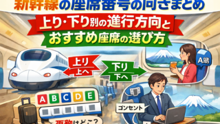 新幹線の座席番号は進行方向によって向きが変わります。本記事では上り・下り別の座席の見方、富士山が見える席、おすすめ座席の選び方をわかりやすく解説。予約前に知っておきたいポイントを完全まとめ。