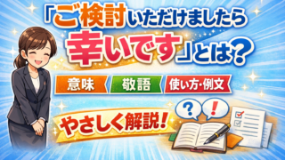 「ご検討いただけましたら幸いです」の意味や正しい使い方を解説。ビジネスメールで失礼にならない表現、言い換え、注意点、すぐ使える例文まで網羅。社内・社外どちらにも使える丁寧な依頼フレーズをわかりやすく紹介します。