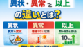 言葉の違い 「異状」「異常」「以上」の違い一覧|意味・使い分け・例文をわかりやすく解説