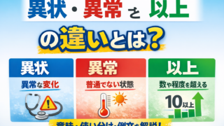 「異状」「異常」「以上」は同じ読み方でも意味が異なる言葉です。本記事では3つの言葉の違い、語源、正しい使い分け、具体的な例文までをわかりやすく解説します。文章を書くときに迷わないための日本語解説記事です。