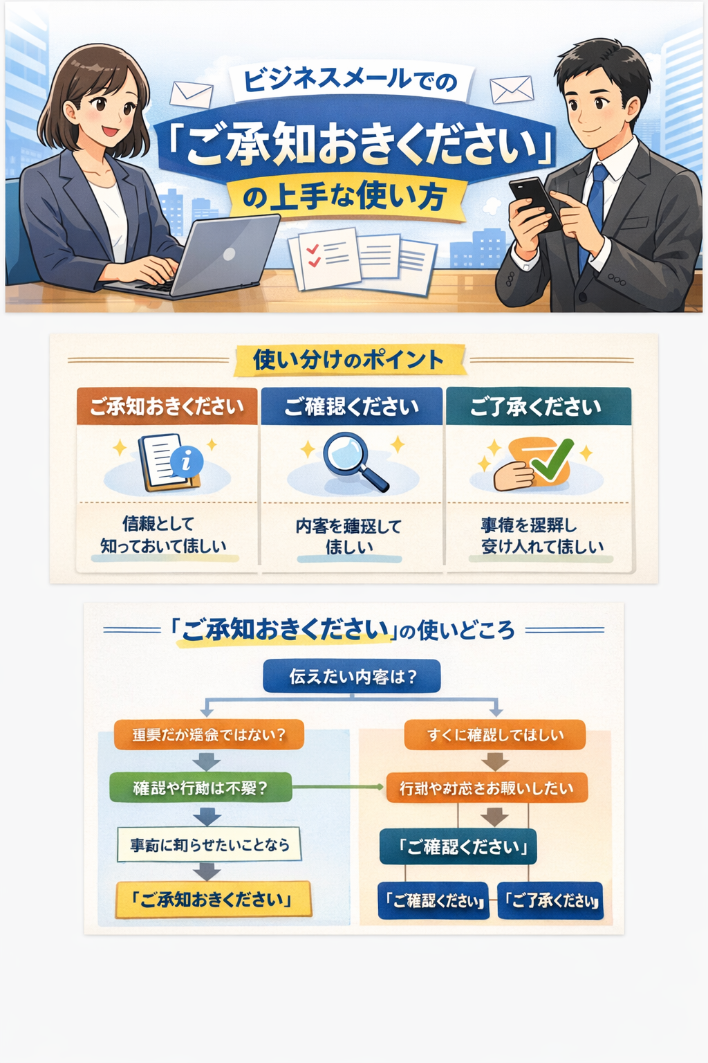 本記事では、「ご承知おきください」の意味や基本的な使い方、似た言葉との違い、活用できる具体的な場面、失礼にならない言い回しの工夫、実務で役立つ例文などを詳しく解説します。正しい理解を身につけ、相手に配慮した伝わりやすいメール作成を目指しましょう。