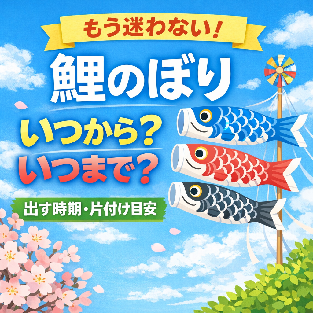 鯉のぼりを飾るおすすめの時期は、一般的には4月中旬〜下旬、片付けの目安は5月5日〜5月中旬あたり。ただし大切なのは、日付の正解を探すことではなく、家族が気持ちよく楽しめるタイミングを選ぶことです。