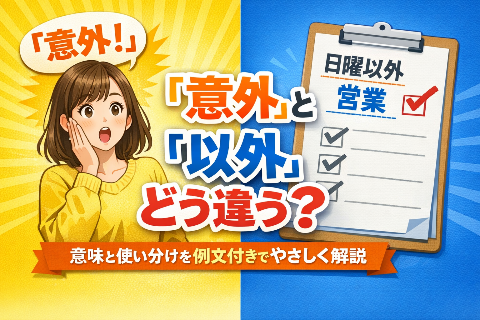 「意外」と「以外」は、どちらも「いがい」と読むため、文章を書くときに迷いやすい日本語のひとつです。