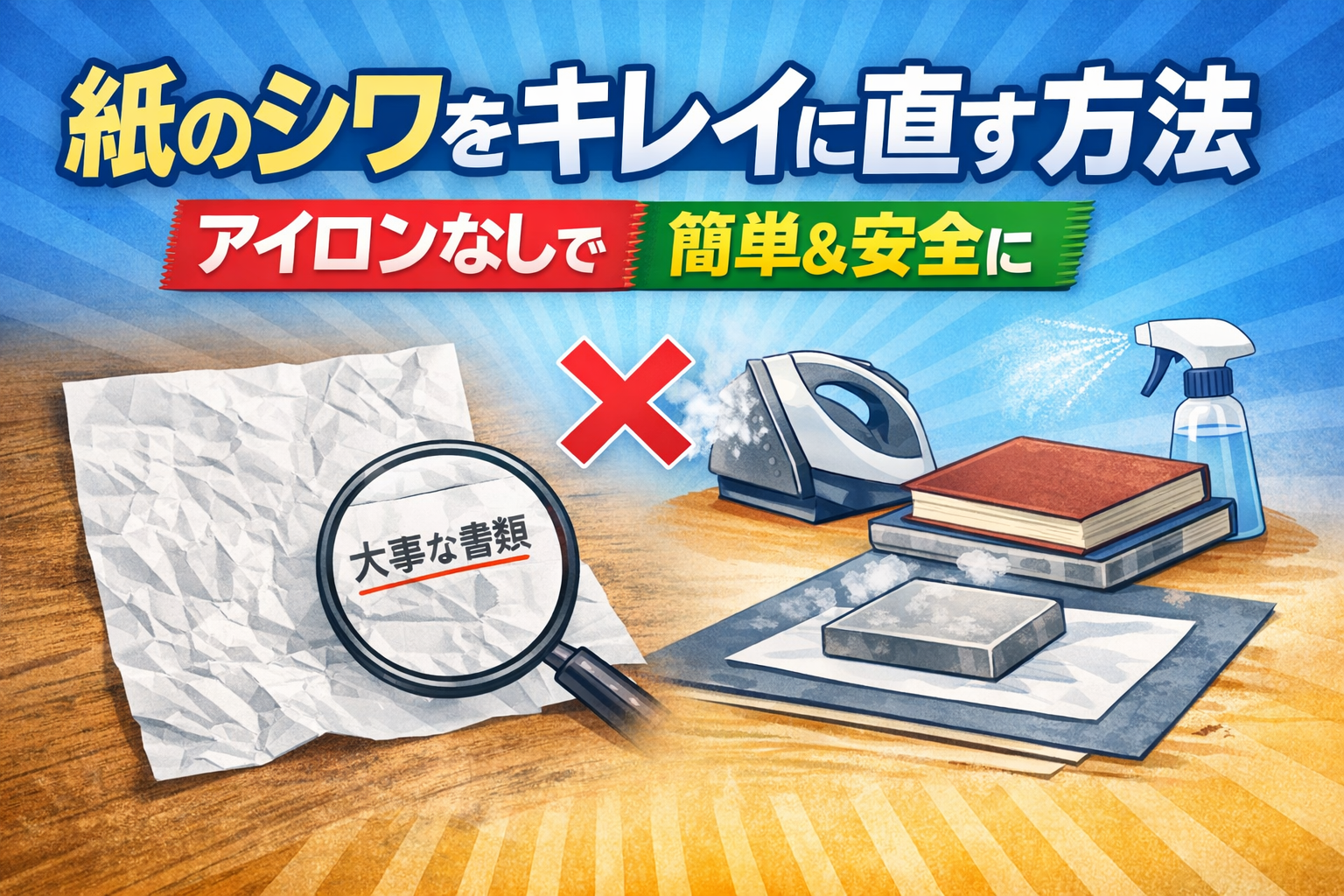 実は、紙のシワはアイロンを使わなくても安全にきれいに伸ばせます。しかも、間違った方法を選ぶと「インクがにじむ」「紙が変色する」など取り返しのつかない失敗につながることも。