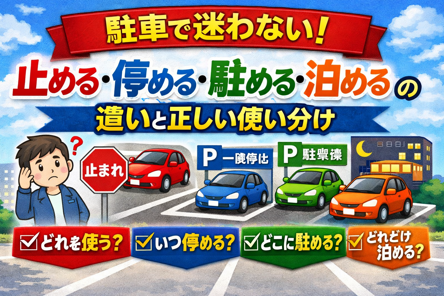 駐車で迷わない!「止める・停める・駐める・泊める」の違いと正しい使い分け